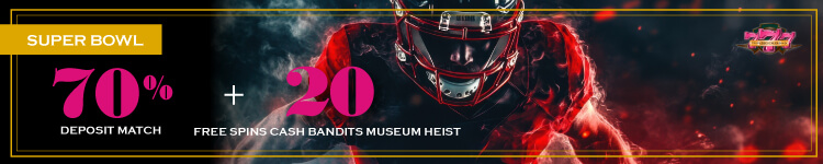 Touchdown! 🏈 Score big this Super Bowl season with TripleSeven’s exclusive offer: a whopping 70% bonus deposit match + 20 spins on Cash Bandits Museum Heist! Fuel your excitement for the game and multiply your wins with our unbeatable bonus. Don’t miss out on this limited-time opportunity to elevate your gaming experience.