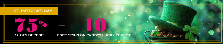 Celebrate with a 75% Deposit Bonus + 10 Spins on Paddy’s Lucky Forest! Don’t miss your chance to find the pot of gold — grab your bonus today!