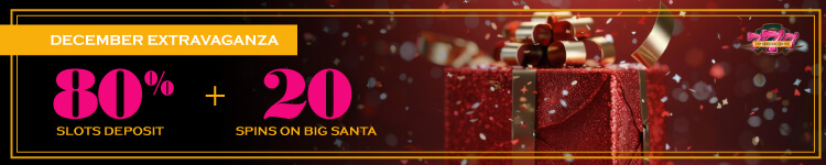 Deposit this month and enjoy an incredible 80% deposit match bonus PLUS an exciting 20 spins on the festive Big Santa slot. Kickstart December with extra spins and bonus cash!