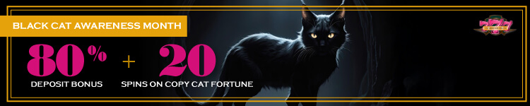 Enjoy an 80% deposit bonus plus 20 spins on Copy Cat Fortune! Embrace the luck of the black cat and spin your way to exciting rewards!