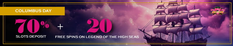 Celebrate Columbus Day at TripleSeven with a 70% Deposit Bonus + 20 Free Spins on Legend of the High Seas!.