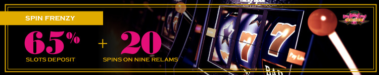 Every time you use this code we will give you a 65% match bonus and 20 Bonus Spins on Nine Realms to boost your balance even more.
