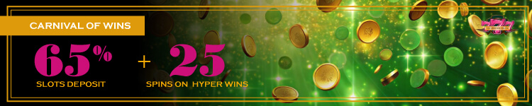 Every time you use this code we will give you a 65% match bonus and 25 Bonus Spins on Hyper Wins to boost your balance even more.