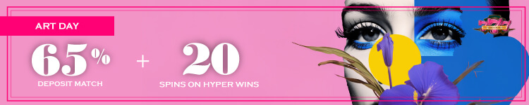 Unleash your inner artist with a dazzling 65% bonus PLUS 20 spins on Hyper Wins! Dive into a canvas of winnings and let the colors of luck paint your day!