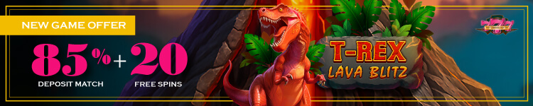Every time you use this code, we will give you an 85% match bonus and 20 Bonus Spins on T-Rex Lava Blitz to boost your balance even more.